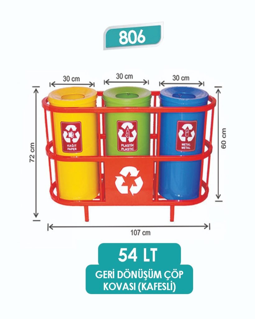 E806 3 BÖLMELİ KAFESLİ GERİ DÖNÜŞÜM SETİ BOYALI